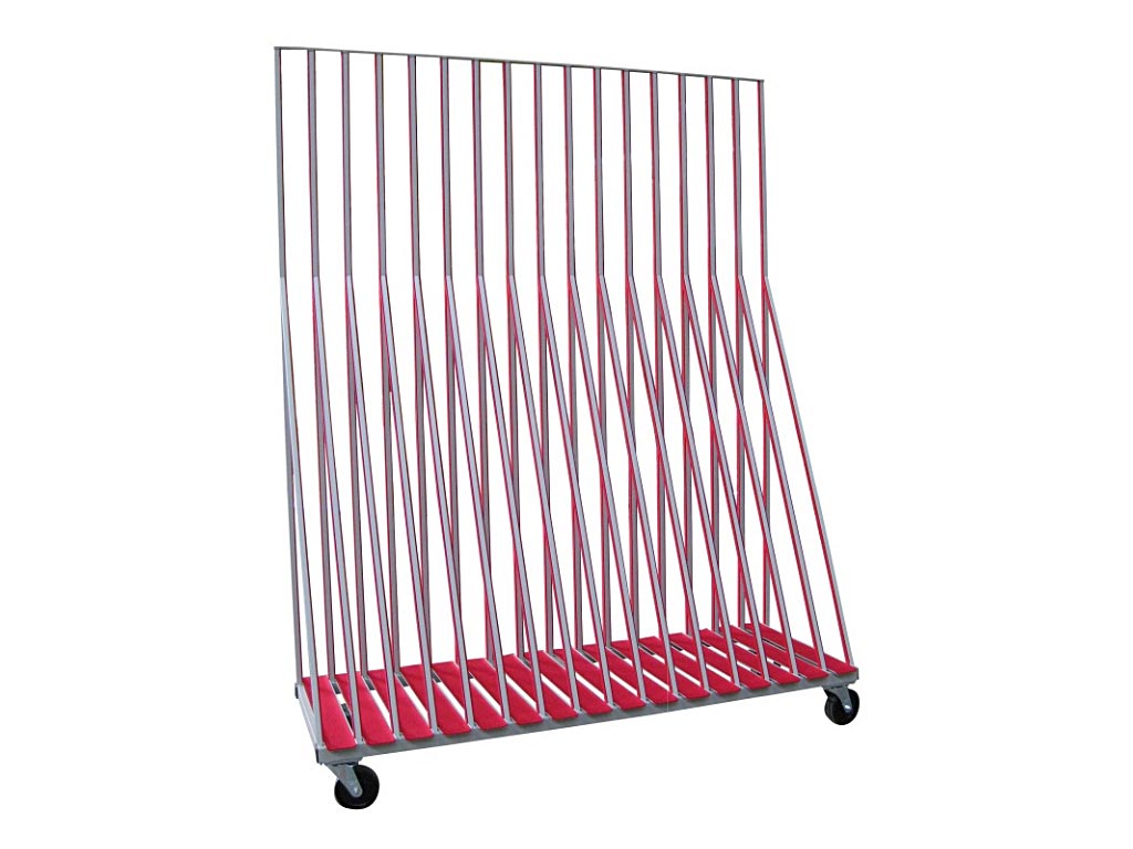 Le chariot de stockage RU-FLW est utilisé pour le rangement et le transport en atelier des châssis de fenêtres non vitrés.