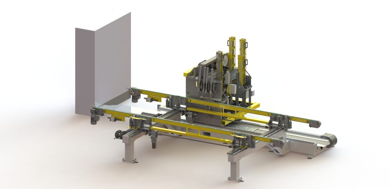For fastening on sashes and/or frame pieces. Manual loading table or optional motorized conveyor.