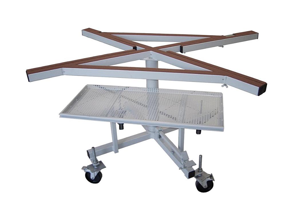 - Continuous pneumatic height adjustment with a range of 880 to 1250 mm (rotating lift table).