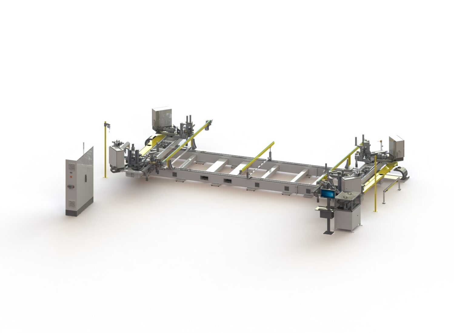 Pour l'assemblage automatique de cadres avec ou sans insertion du vitrage