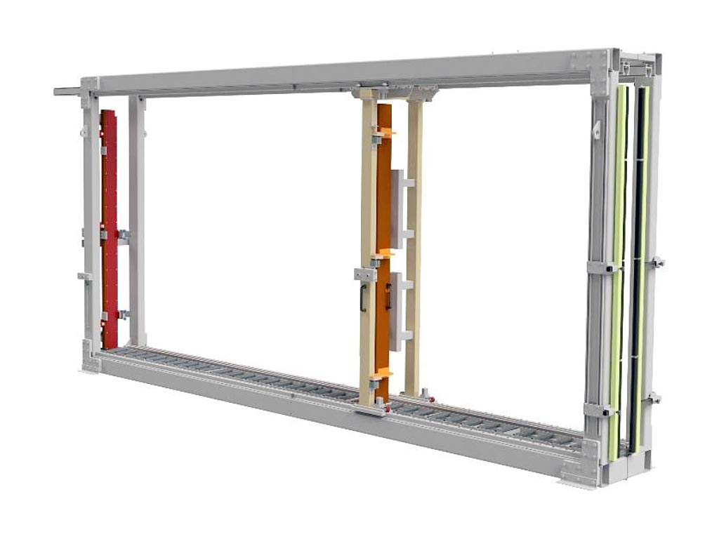 Conçue pour déposer des vitrages dans des cadres et contrôler le fonctionnement en position verticale.